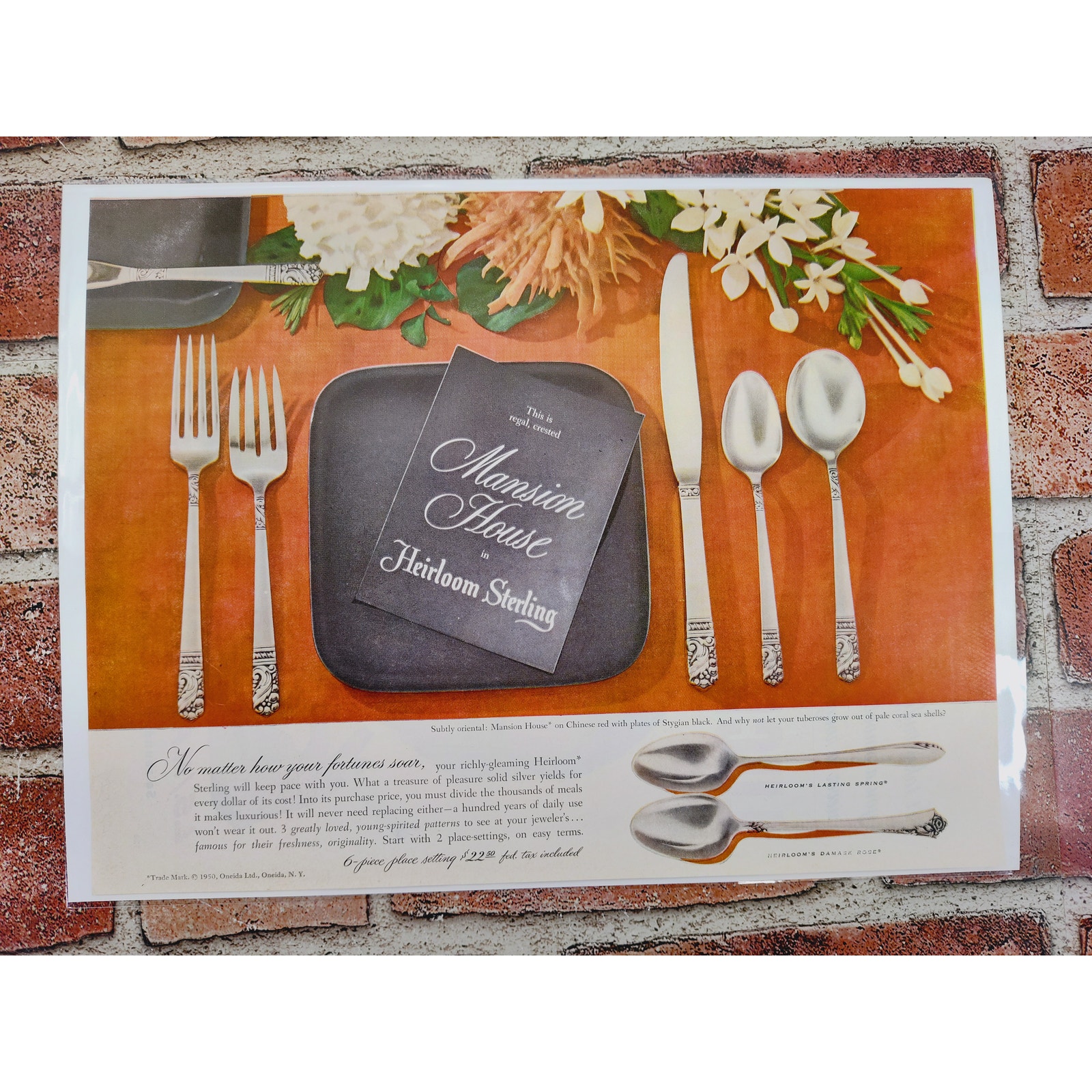1950 Mansion House in Heirloom Sterline Flatware Silverware Vtg Print Ad