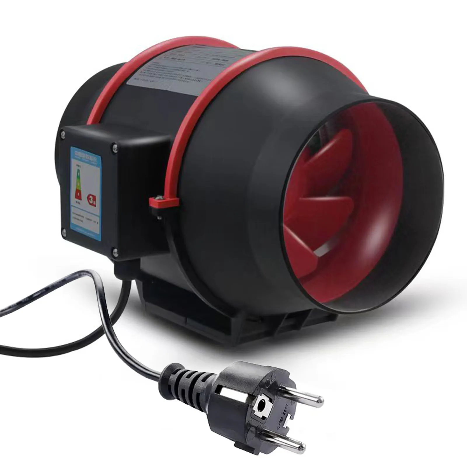 *High performance: Duct fan 100 mm, voltage: 220 V/50 Hz-60 Hz, power 40 W, speed 2500 s/min, air volume: 310 m³/h. Based on the rechargeable design of the fan blades of a jet turbine motor, it provides stronger passage fan winds and reduces the noise caused by high air speeds by approx. 30 db