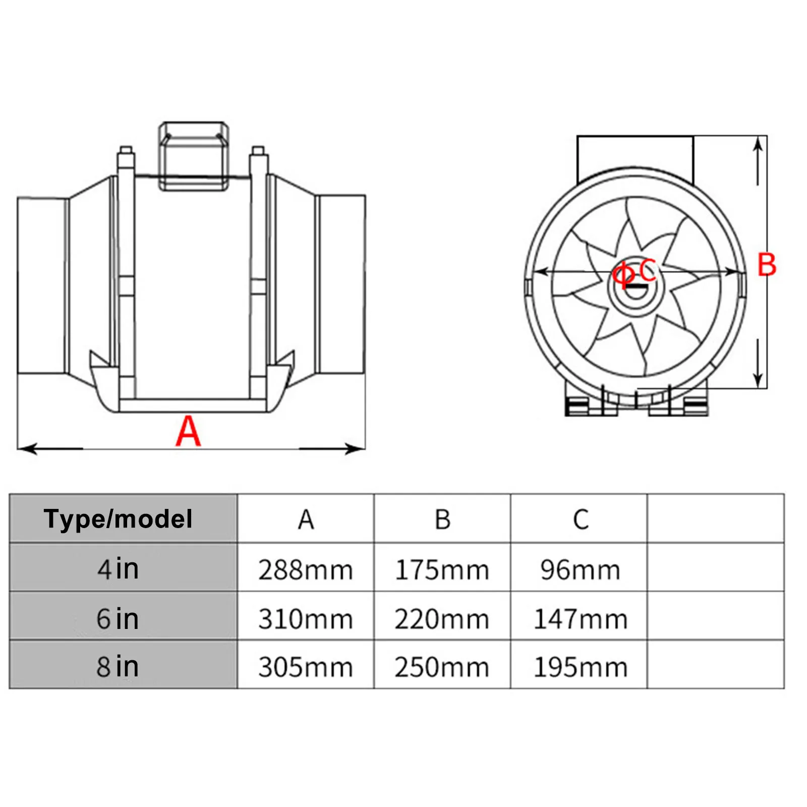 *Copper wire motor: The duct fan is heat resistant with a full copper wire motor, a source of high airflow, stronger and more durable than fans of the same power. Fan casing is made of high quality ABS material, oil, moisture and corrosion resistant, MTBF up to 30,000 hours, durable. Suitable for placement at air temperatures from -20°C to 60°C