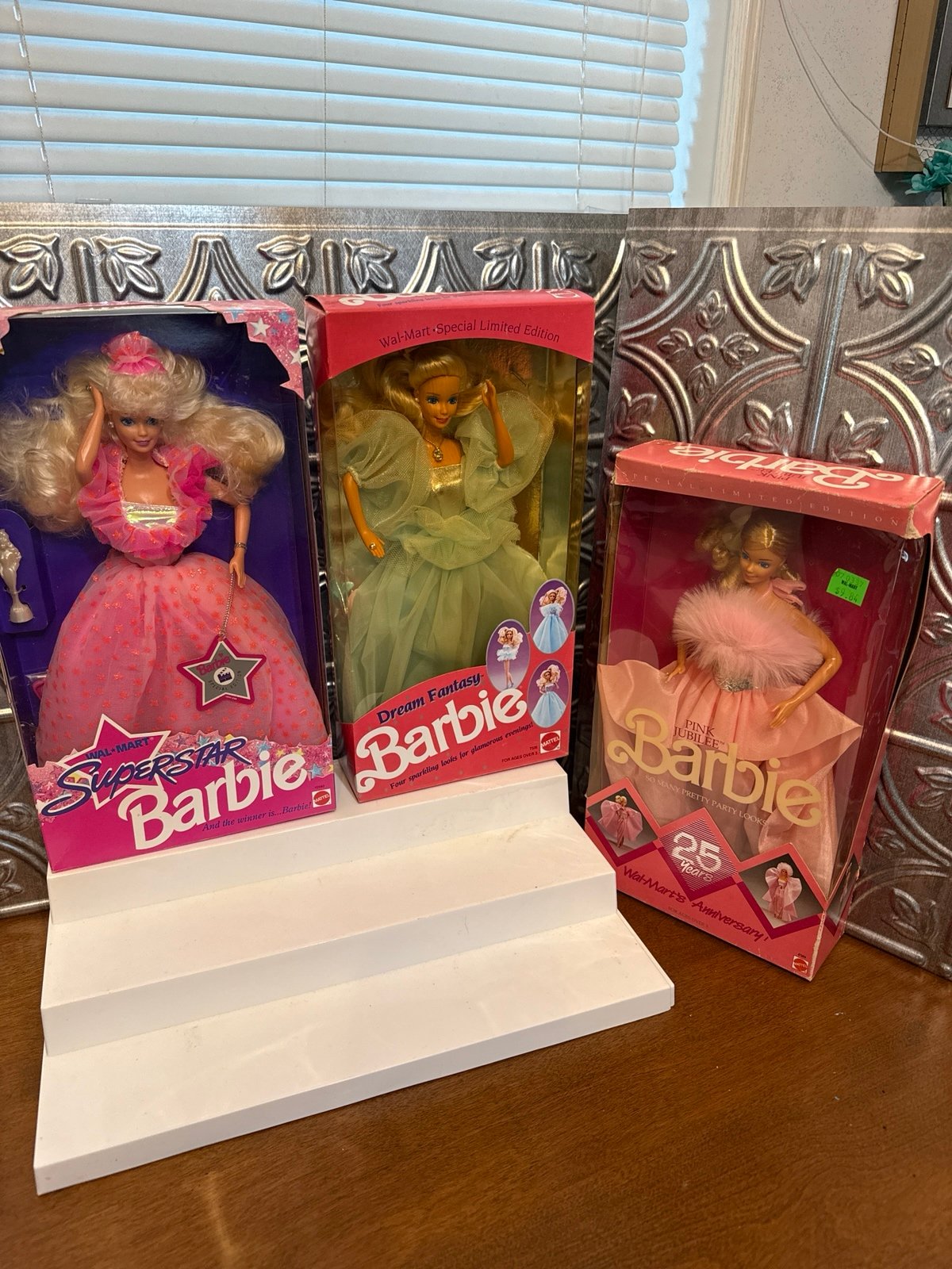 1993 Walmart Superstar Barbie Special Edition (1993 NRFB) And the Winner is…Barbie has a trophy. Clean box Sealed great condition.
