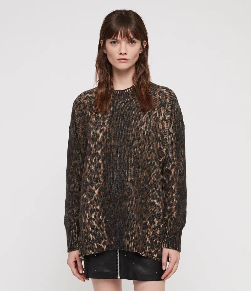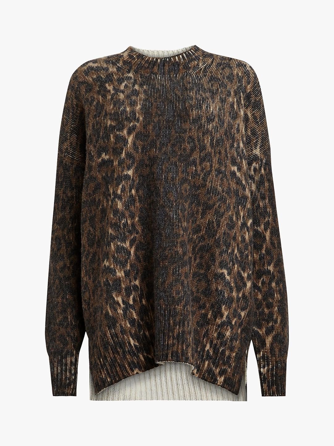 Crafted from a wool blend and brushed for a supersoft fluffy finish, the Leopard Jumper is cut to an oversize slouchy fit, perfect for casual outfitting in the cold weather. Featuring a bold animal print design for instant impact.