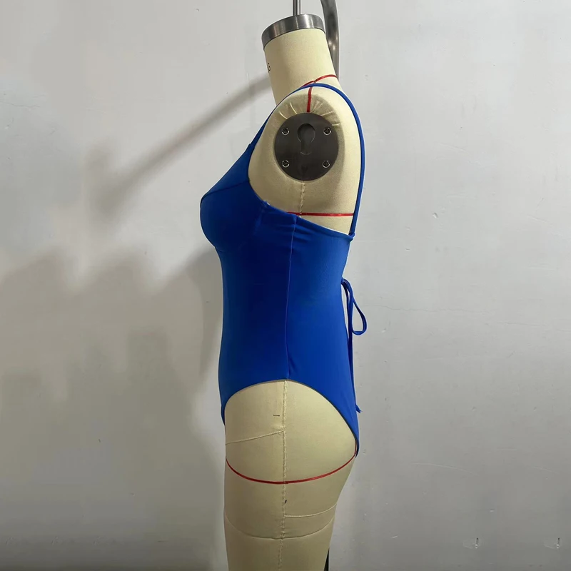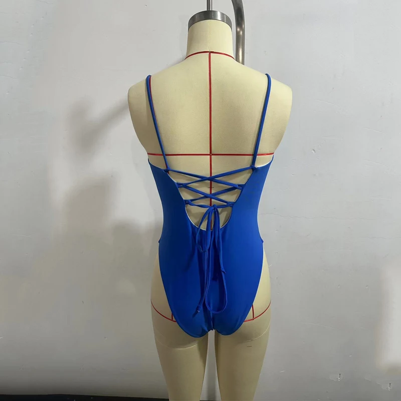BEACHCICI Women's Bikini One Piece Summer Sexy Fashion Suspender Solid V Neck Slim Backless Tie Up Beach Vacation Swimsuit