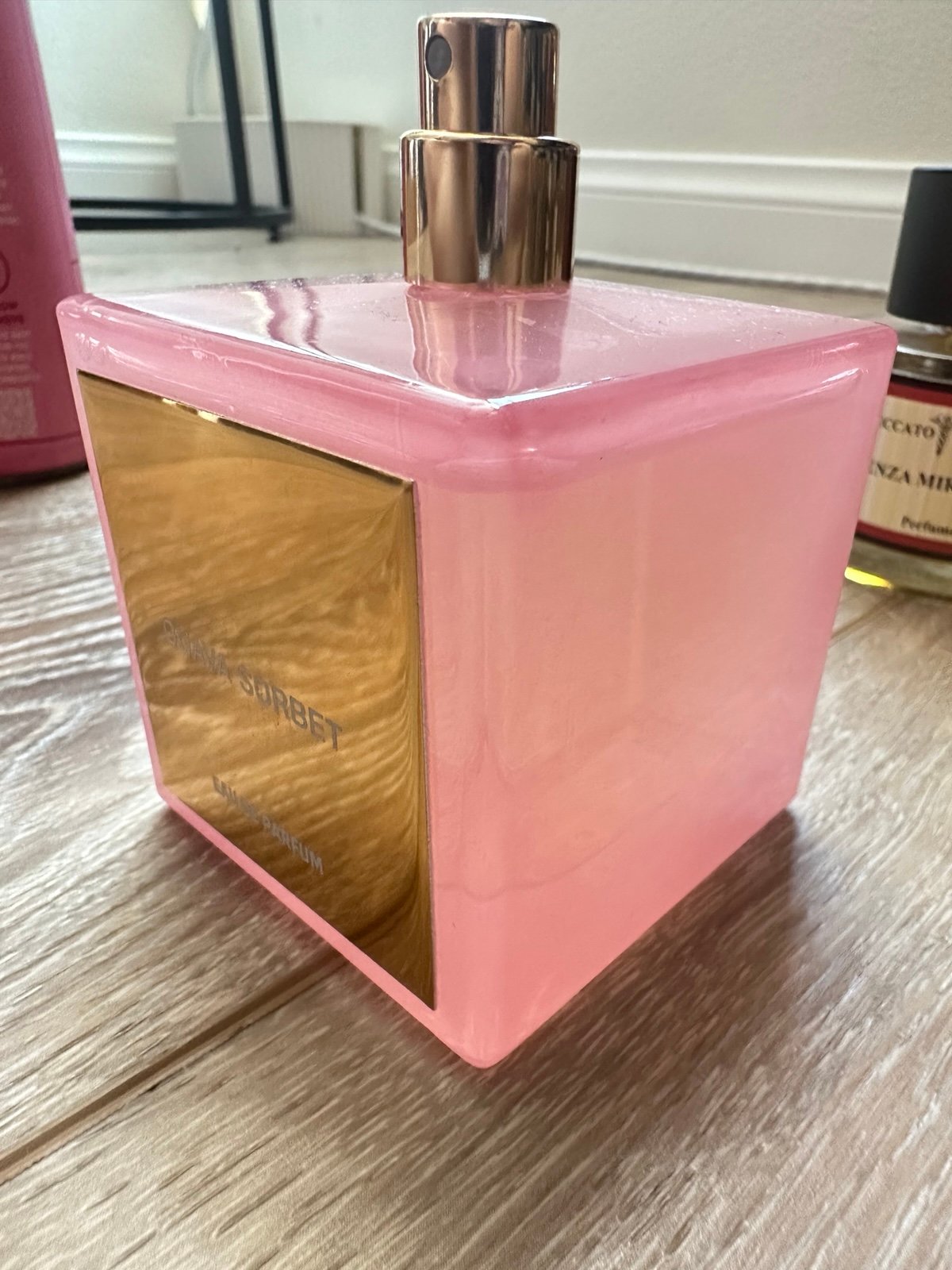 Guava, passionfruit, bergamot, mandarin, grapefruit, sugar crystals, osmanthus, white jasmine, vanilla, sandalwood, dry amber, musk