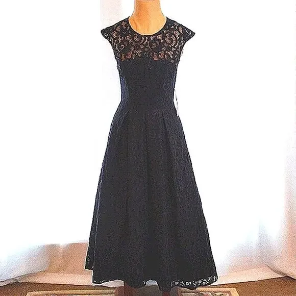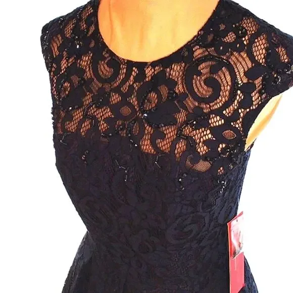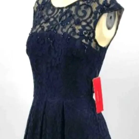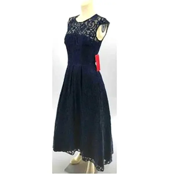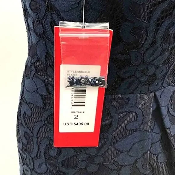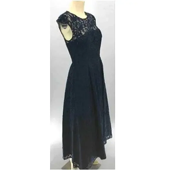 CARMEN MARC VALVO INFUSION Laced GOWN Size 2 Dark Navy Blue FORMAL DRESS LONG MAXI Regencycore Avante Garde Look stunning at your next gala event, wedding, formal party. 100% AuthenticCarmen Marc Valvo Formal Dresswith Tag $495Features:Dark Navy Blue colorThe whole dress is LaceFully Lined bottomFit and Flare styleFlattering Shape & WaistlineBeaded Front Sleeveless with slight capPleated skirt large pleats Sheer neckline Rounded NecklineTHIS DRESS IS STUNNINGSee photos for more detail Size 2Measures Approximately:16" Shoulder to Shoulder16" Pit to Pit13.5" Waist from one side frontThere is no stretch to the wait. please make sure it is your Waistline.49" Length54" Width Bottom Hem across front. Gorgeous flowy bottom skirt ballroom style.Condition: Excellent - shows no sign of wearColor/Pattern: Blue/FloralYour beautiful gown will be shipped out immediately so thst you csan enjoy it.Inventory #495