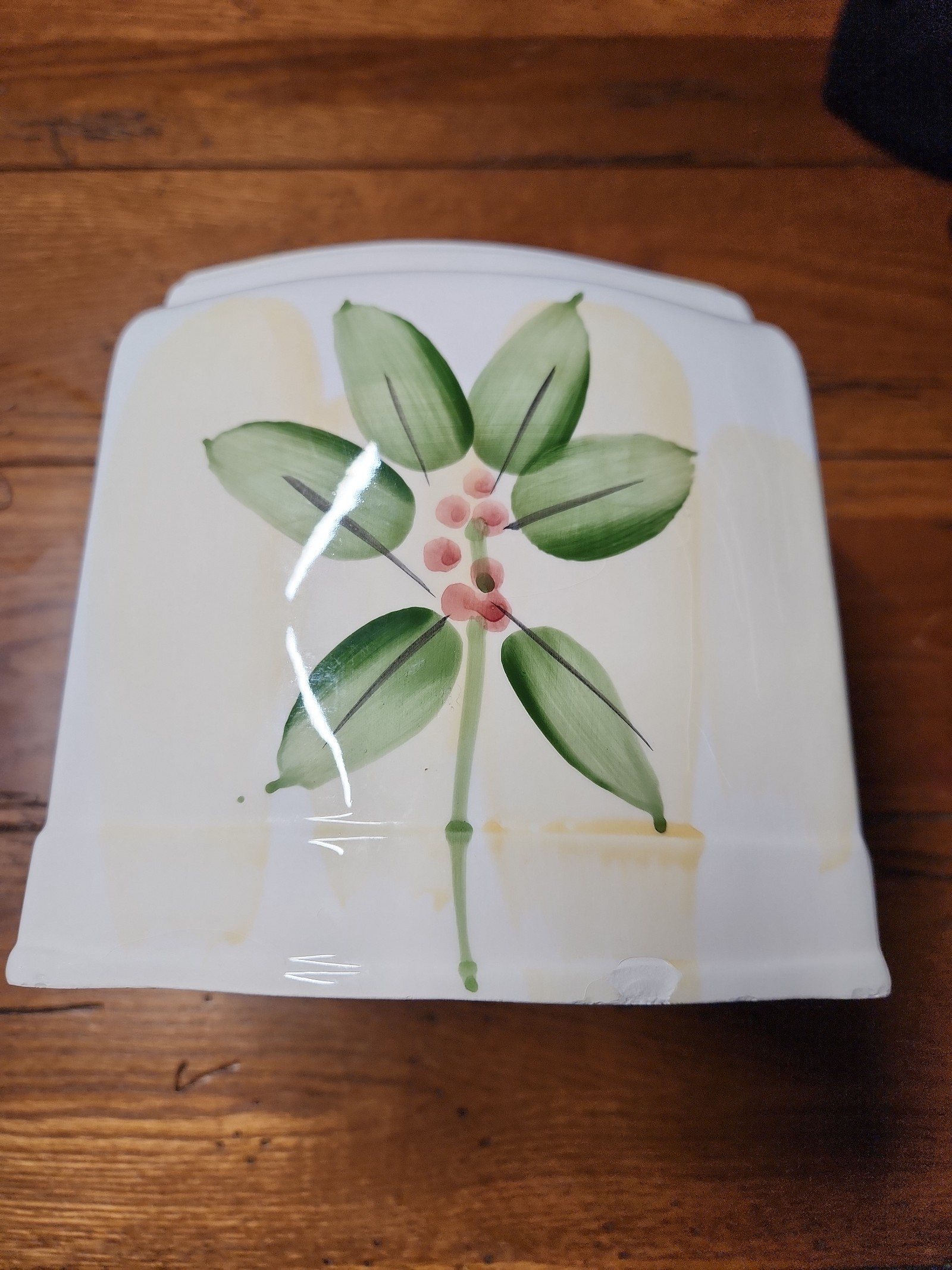 – Soap dispenser has a small chip near base on leaf side, barely visible when displayed upright and on corner (see photos).