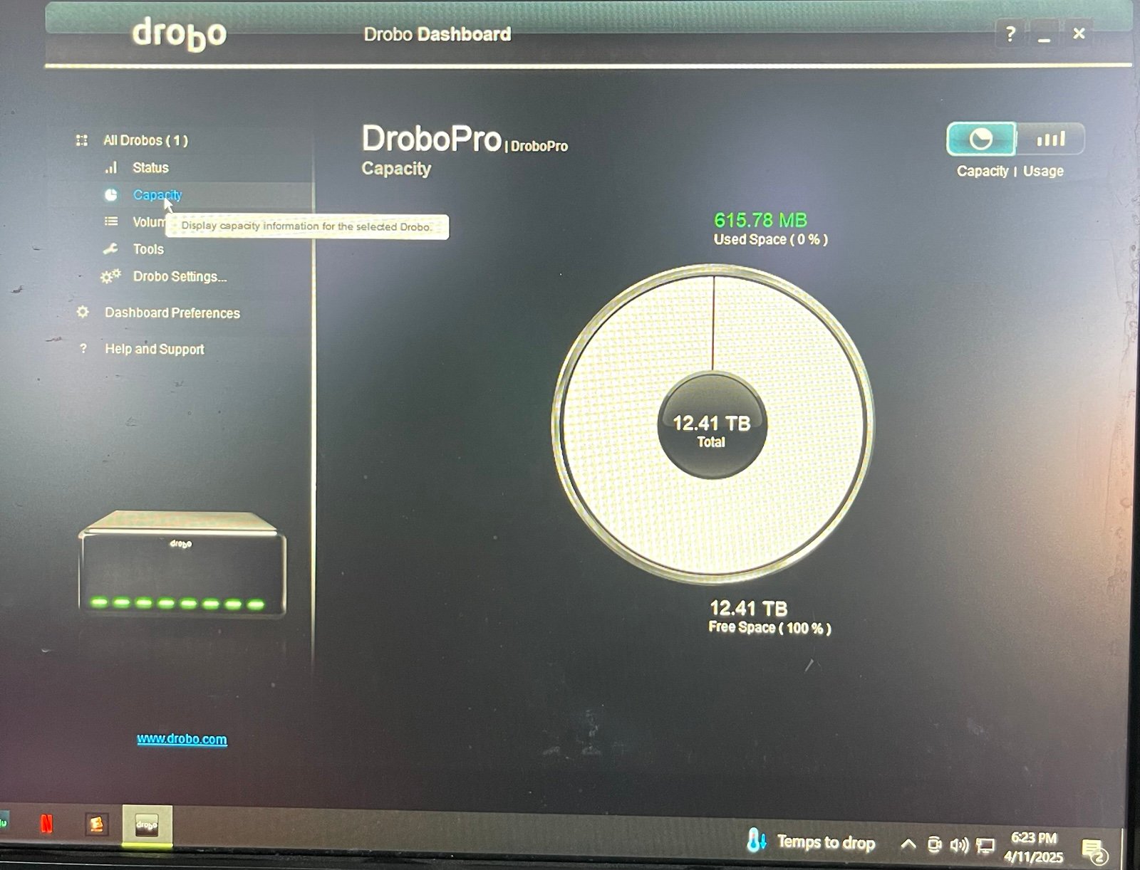* Attach DroboPro directly to a server or workstation, or to a shared server or workstation on a network that can provide access to multiple clients. Interface options include iSCSI (using Gigabit Ethernet), FireWire 800, and USB 2.0.