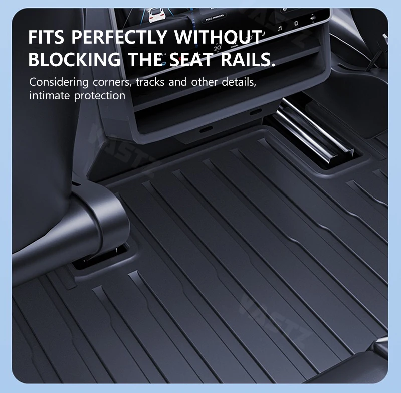 Designed to fit perfectly without blocking the seat rails. Carefully considering corners, tracks, and other details, it provides intimate protection while ensuring no interference with the normal use of seat adjustments.