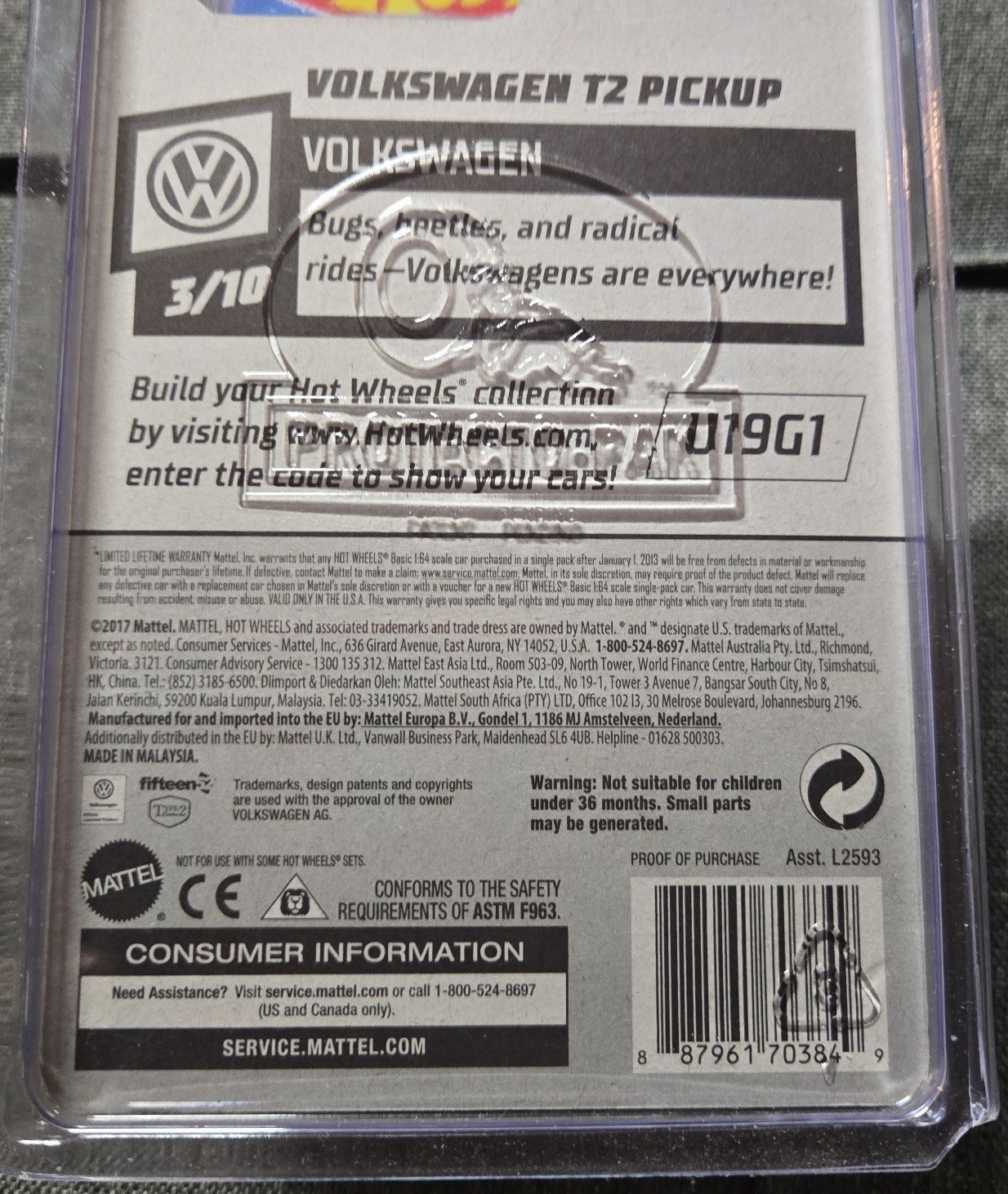TH flame symbol located behind Car on blister/card in gold