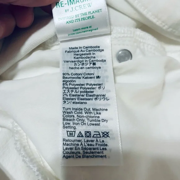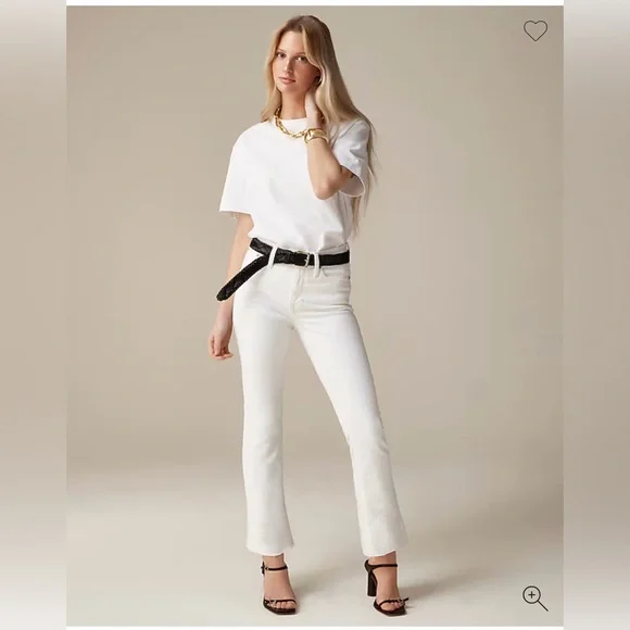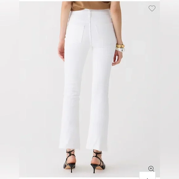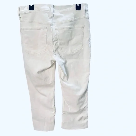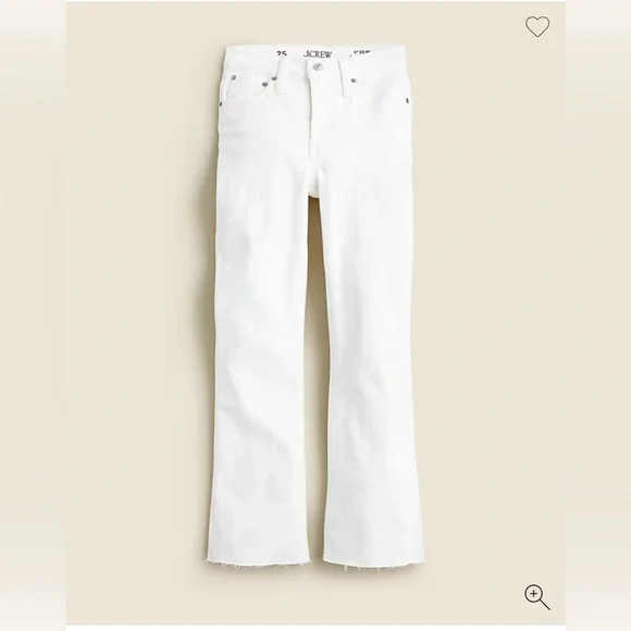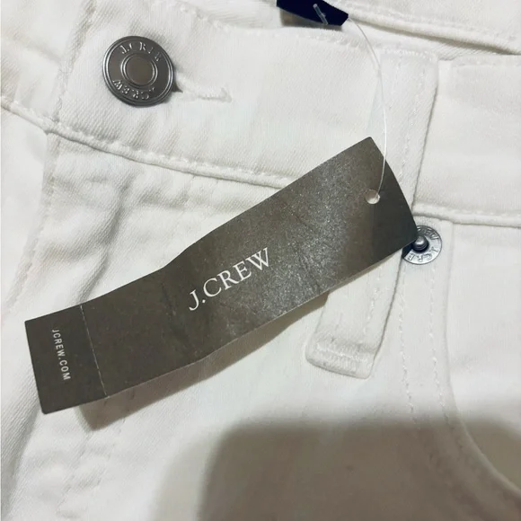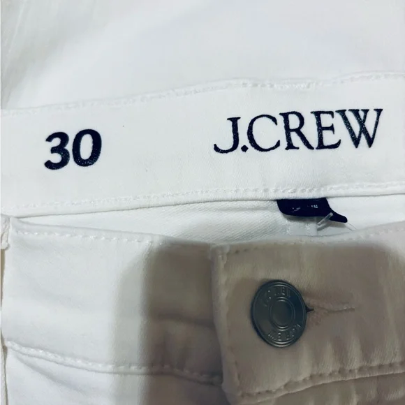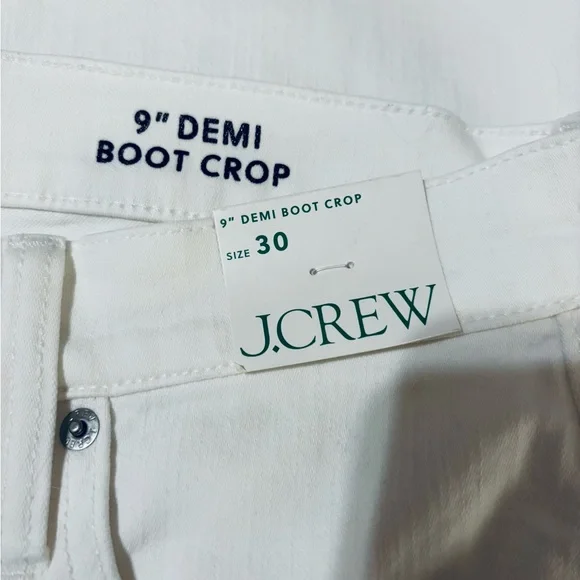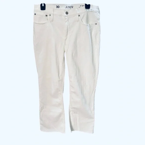 J. Crew 9” Demi Boot Crop jeans size 30. NWT in White. Mid-riseSlim through the hip and thigh with a slim, flared legZip flyTraditional five pocket styling Perfecting pocketsRaw hems2003 super stretch material Machine washWaist laying flat 16 inches Rise 10.5 inches Inseam 25 inches Leg opening 9 inches across 00140