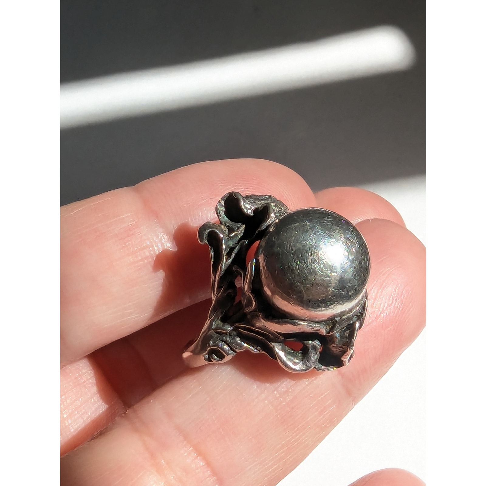 Jens Peterson 1920's Sterling Silver Art Noveau Vintage Floral Ball Women's Ring US 7.5