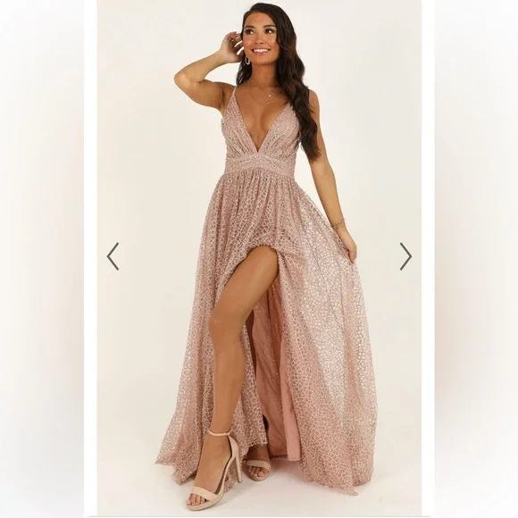 The Lady Godiva Dress is a stunning occasion piece with a plunging neckline, empire waist and spaghetti straps that overlap at the back to form a criss-cross feature. It falls to a luxurious maxi length with a sensual thigh split and features an all-over glitzy embellishment against an underlayer of satin-like lining. Team it with a statement pair of heels, fine jewellery and glam hair and makeup to complete the look!Shop all Showpo.Product DetailsInvisible zipper on the centre back Adjustable spaghetti straps that cross over at backPlunging necklineLow backEmbellished all overFully linedSize & FitSize 6 length: 152cm / 60in (incl. straps)Model is wearing size 6 AU / 2 US / 6 UK / 34 EUModel's height is 165cm / 5'4"Material & CareMade with 100% polyester, medium stretchFully lined with 100% polyester, medium stretchCold hand wash only, cool iron, do not tumble dry, wash separately