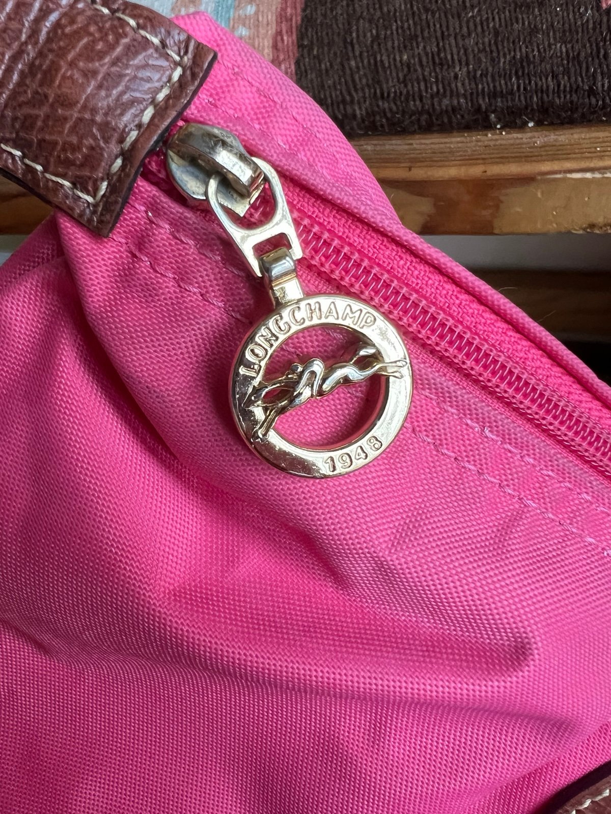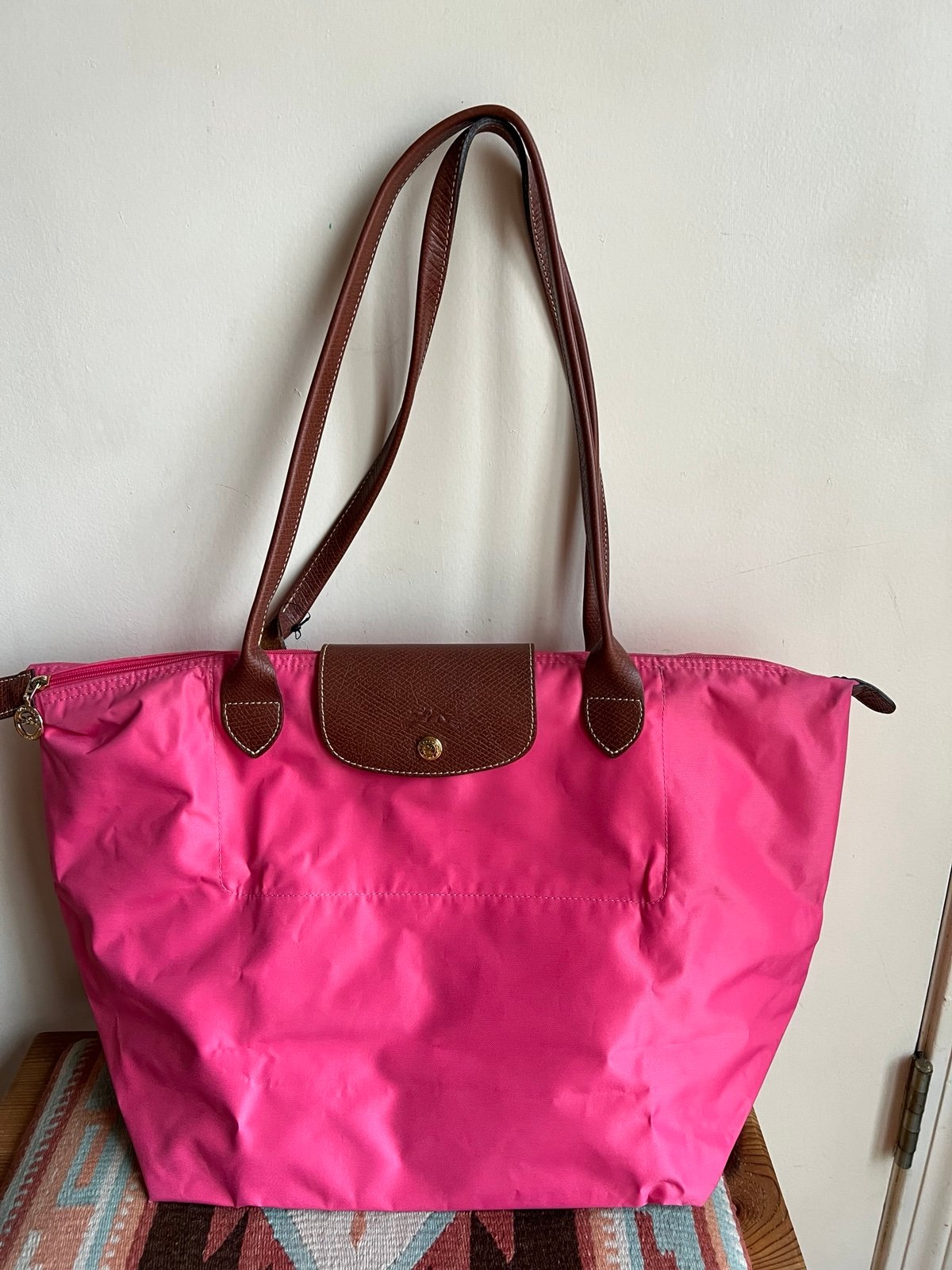 Longchamp Le Pliage shopping tote in Barbie pink.