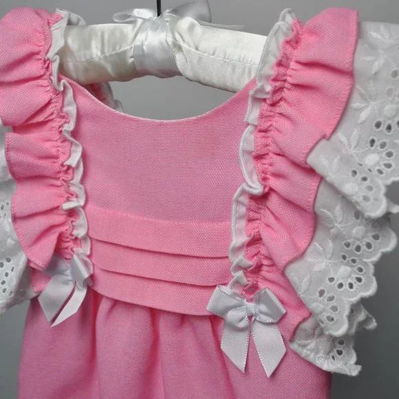 Miranda Spanish Style Pink Ruffle Dress imported from England. Dress has been professionally altered for a small 2 year old, fits more like 24 months. Sleeves were too long and brought the neckline down too far, so sleeves were brought back a bit and and the hem was shortened to hit right above knees. In excellent condition, worn once very briefly. Beautiful dress!