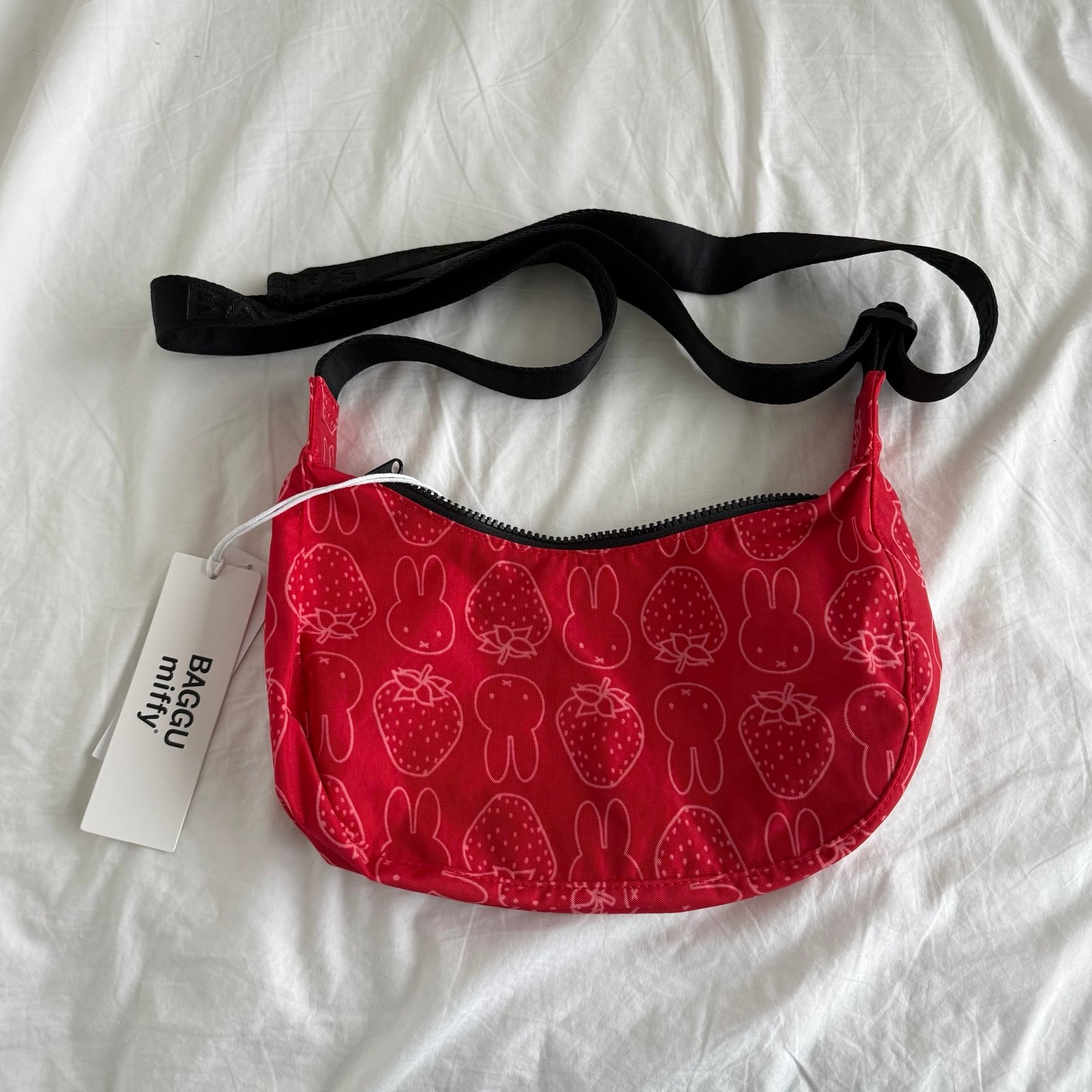 BAGGU’s crescent bag in a smaller size that’s just roomy enough to carry your daily essentials. This UO exclusive version is from the BAGGU & Miffy collection, a limited collab of Miffy bags and more. Small BAGGU crossbody bag with a zippered closure and adjustable nylon shoulder strap.
