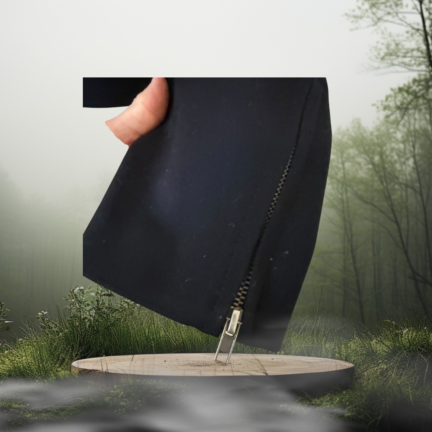 Chic and modern Parallel women's black moto blazer jacket featuring an asymmetrical front zipper and sleek notched lapel collar. Designed for a flattering, fitted silhouette with clean lines and minimalistic style. Lightweight structure makes it perfect for layering over tops or dresses for a polished yet edgy look. Two front slit pockets add subtle detail.