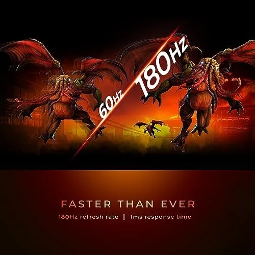 Lightning-fast 180Hz (overclocked, via DP1.4) refresh rate and rapid 1ms GtG response time lets you target moving opponents with precision, putting you ahead of the game. Fast-moving action and dramatic transitions will be rendered smoothly without the effects of ghosting