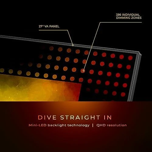 Witness virtual worlds come to life on a stunning VA panel equipped with state-of-the-art Mini-LED backlight technology and 336 individual dimming zones that produce true blacks and brighter whites