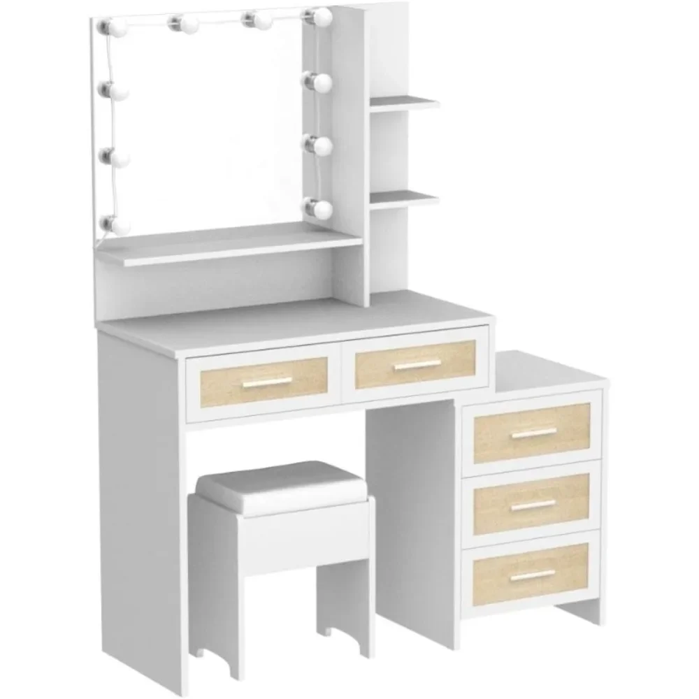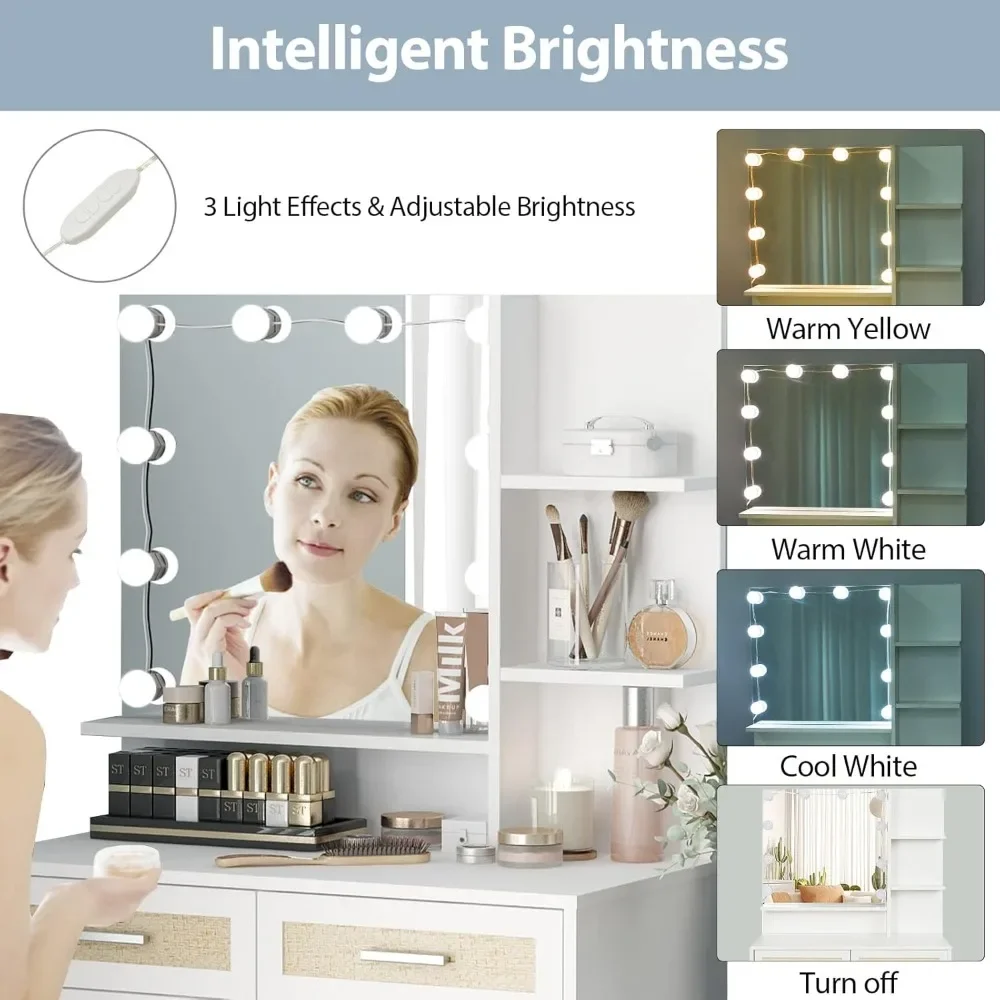 Vanity Mirror with Lights and Table Set: A large mirror with 10 adjustable LED bulbs, providing a total of 3 modes that can be adjusted, including cool, warm, and neutral tones, each tone has two modes of light and dark. The color of the light is adjustable so you can get just the right lighting for you and your room