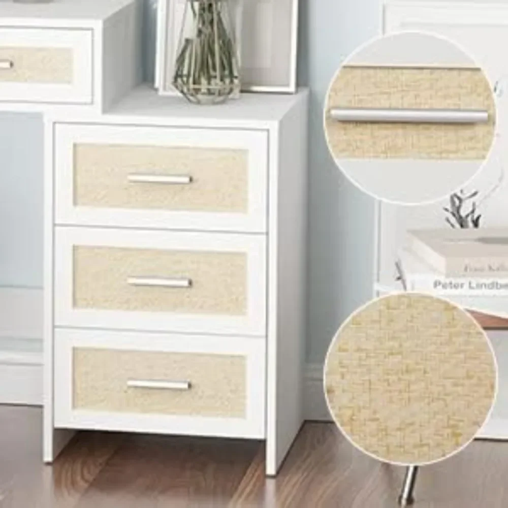 Elegant Design of Weave Style Gold Drawers: Is an all-white dresser too monotonous? Gold drawer, woven material feels comfortable and stain-resistant. Metal silver handle, the perfect combination of elegance and practicality