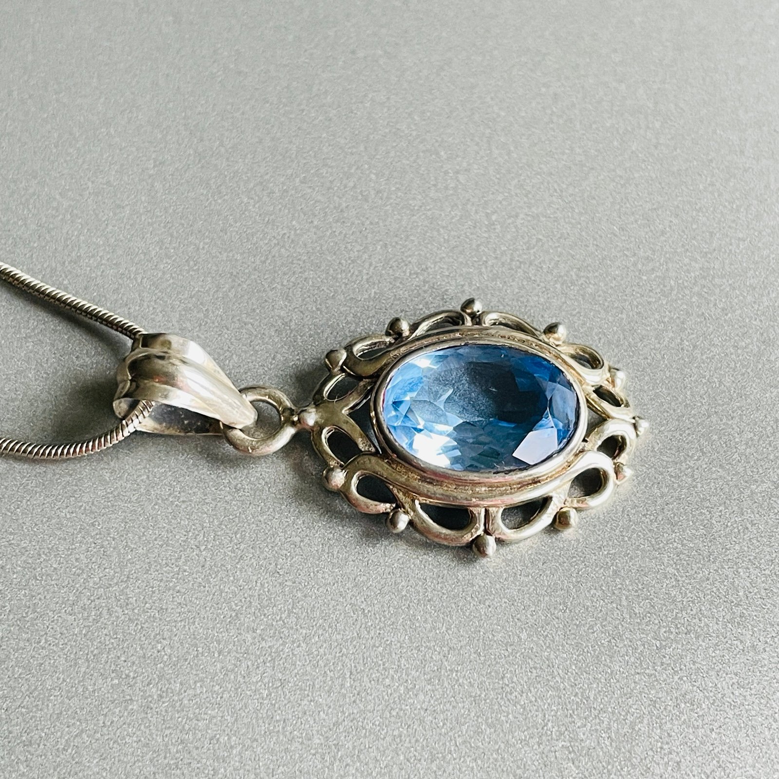 Siberian Blue Quartz Ornate Sterling Silver Pendant Necklace Vintage