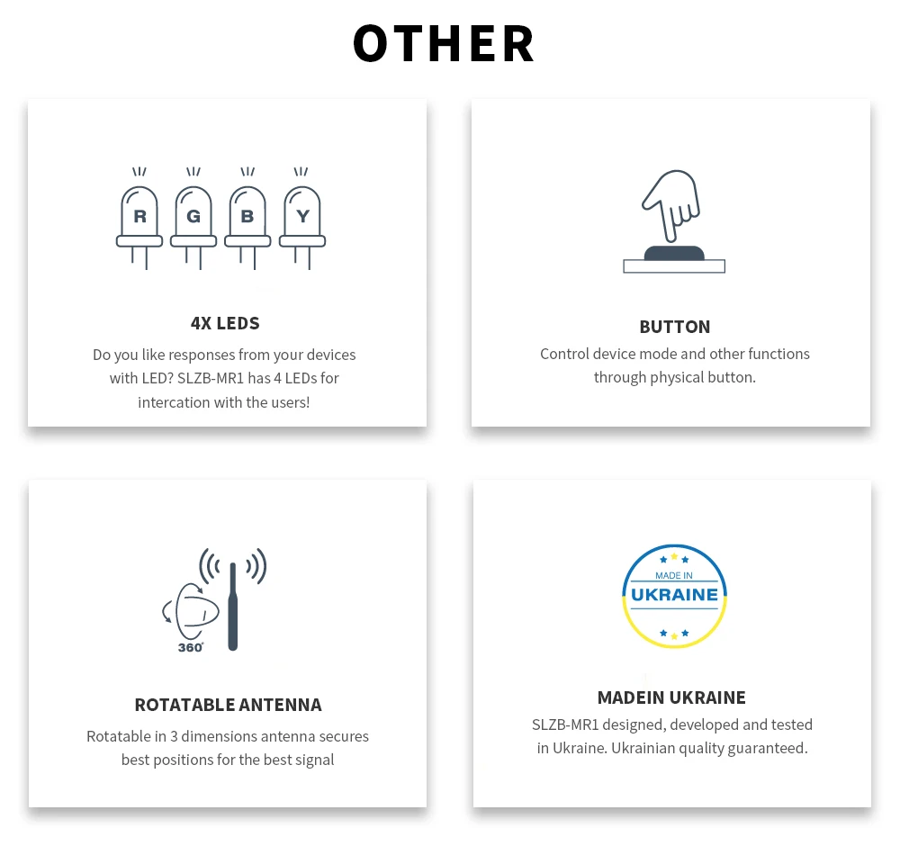 - SLZB-OS supported functionality: VPN, 20+ languages, Scripts support, Network settings, Security, Dashboard, zHub mode, mode switcher, OTA firmware updates etc.