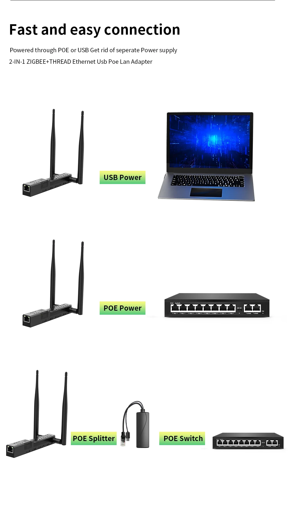 - Ideal for Zigbee networks, works perfect also with Thread networks.