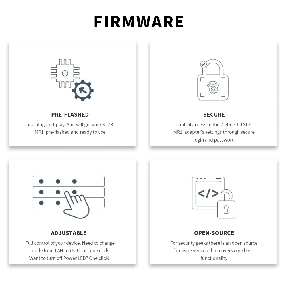 - Zigbee 3.0 support (Zigbee2MQTT & ZHA compatible).