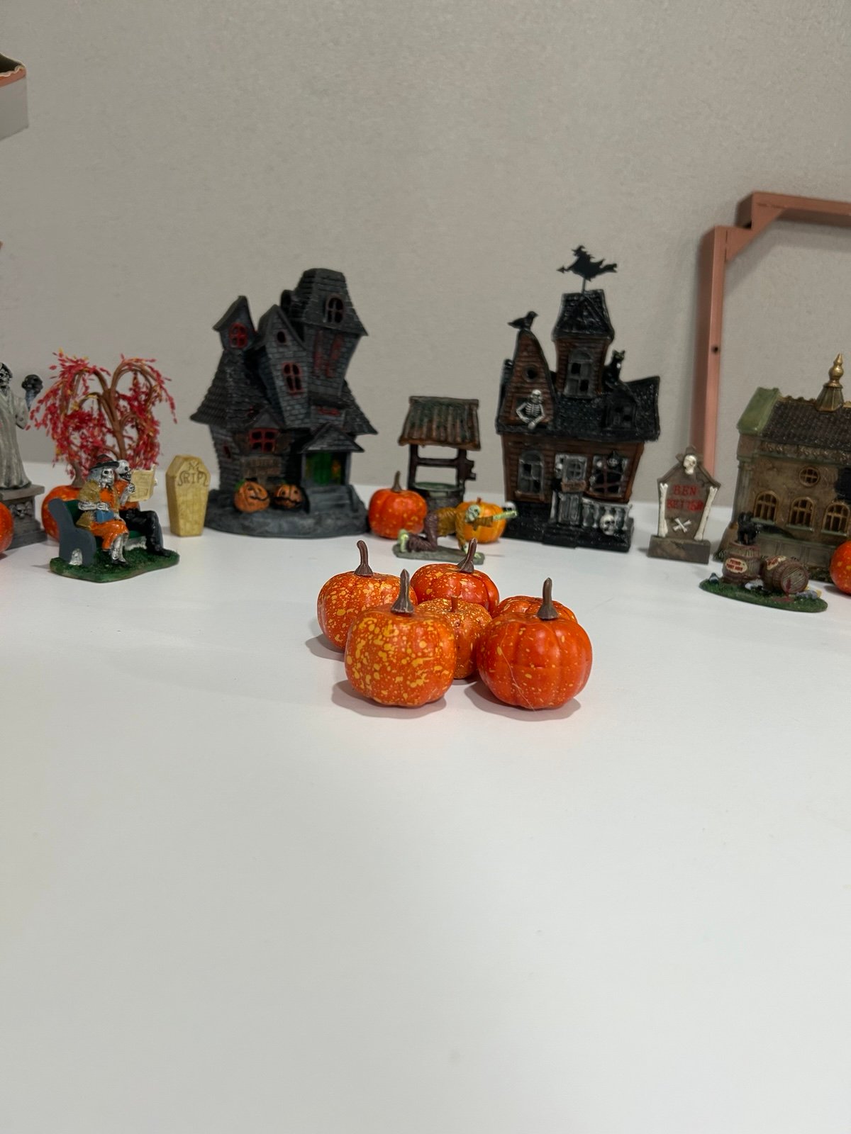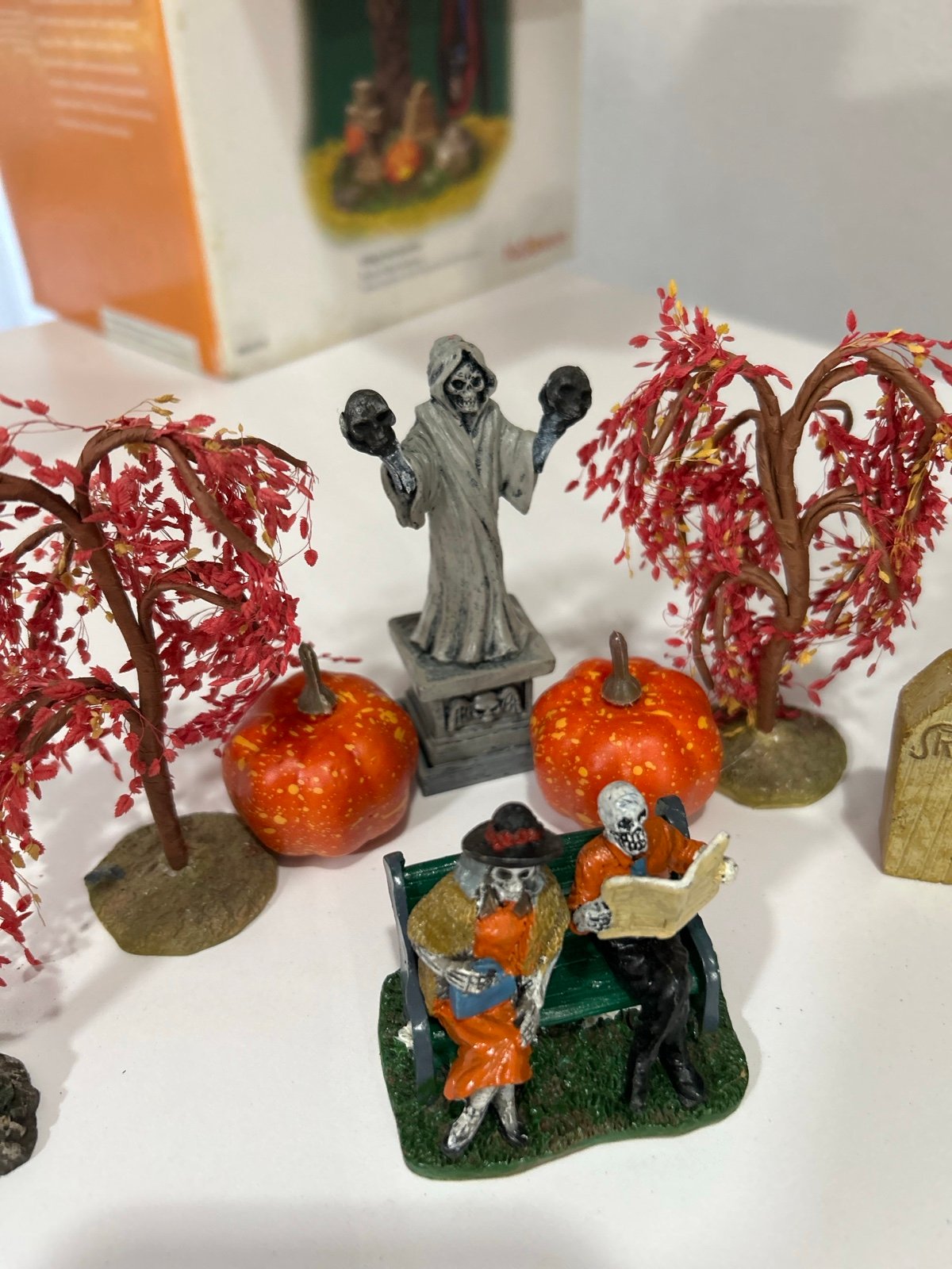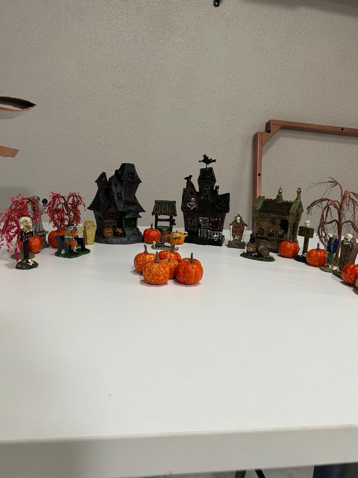 I think maybe a couple of these pieces lit up at one point I’m not sure - - the house with pumpkins in front has a plug on the bottom, so it could possibly still light up if you plugged it in (I don’t have a cord, but Lemax cords are universal).