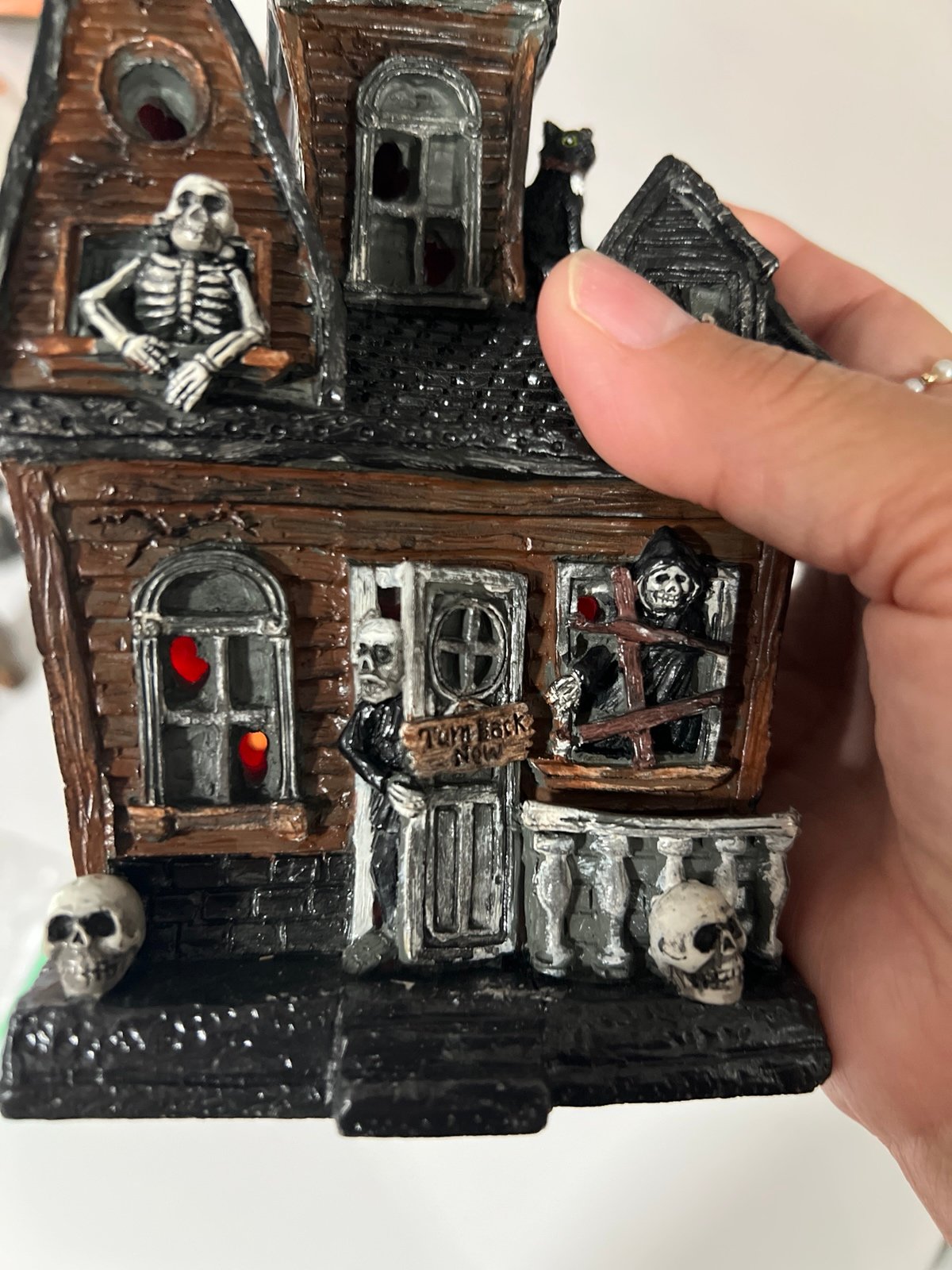 * The crow on top of the witch house has been glued back on - see photo (was like then when I bought it), still lights up!