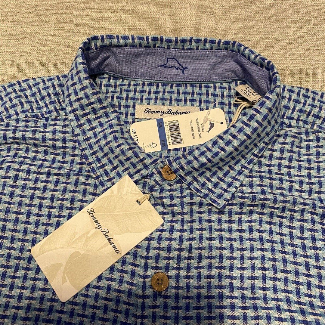 Tommy Bahama Shirt Mens Extra Large Shasta Shores Check Royal Indigo Silk