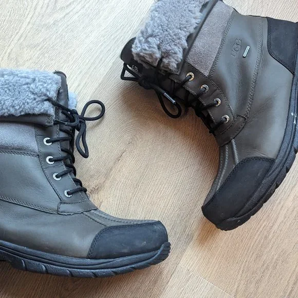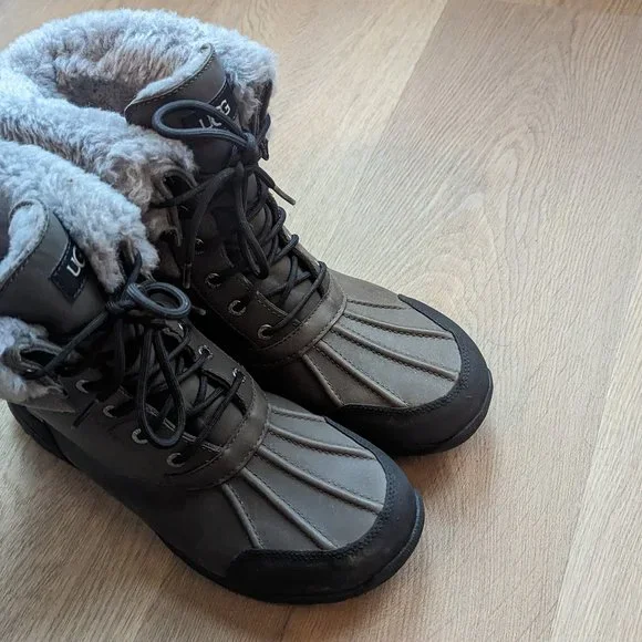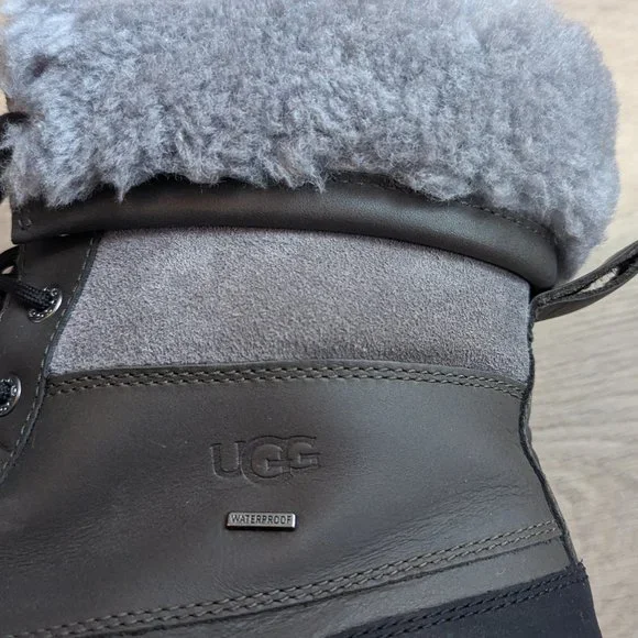 New, no box, Price firm, True to sizeColor Name: MetalStyle# 5521WaterproofWaterproof membrane bootie constructionWaterproof leatherGusseted tongue with water repellent coatingCuffable shaft8mm sherpa lining on vamp, 8mm sherpa lining on quarter, 17mm UGGpure™ wool lining7mm UGGpure™ wool insoleEVA footbedEVA midsole8.5" shaft heightCold weather rated to -20 degrees celsius
