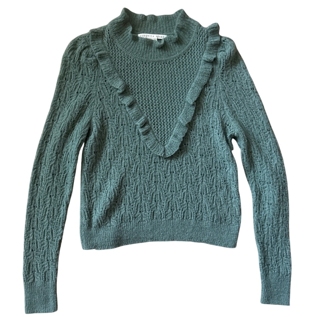 Veronica Beard Alpaca Ruffle Sorina Sweater in Sage Size Medium