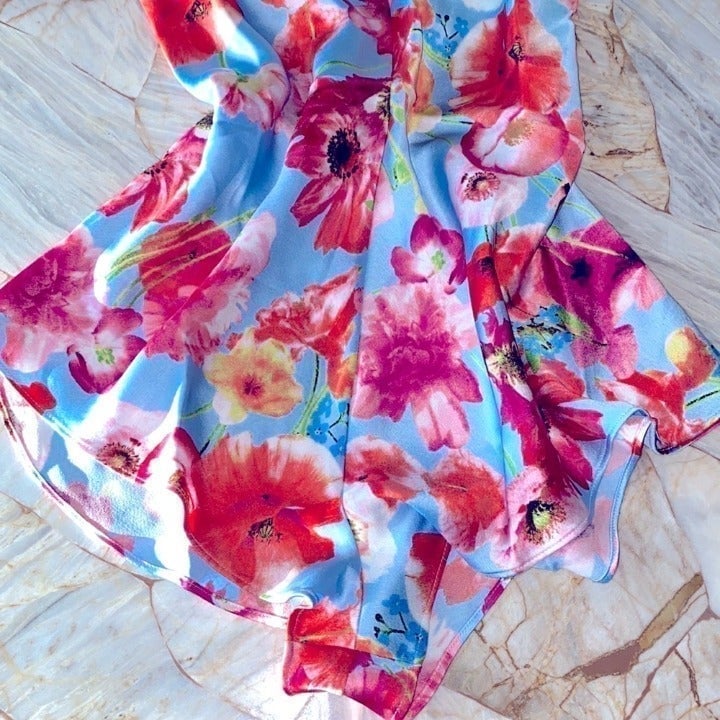 A subtle V-neck, fluttery shorts, and textured stretch satin? It's a yes from us. An open back with adjustable ties brings it all together.