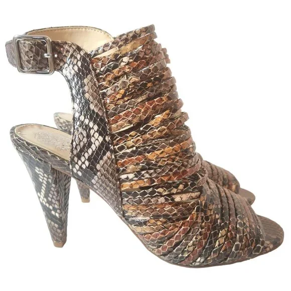 Strippy straps from toes to tops provide uncommon coverage and smart style to the Adeenta dress sandals from Vince Camuto.3-1/2" cone heelRound-toe dress sandals with adjustable buckle at slingback strapAllover strippy strapsLeather upper; manmade lining; manmade soleWomen's Size: 6MCondition: New without box as seen in my photos