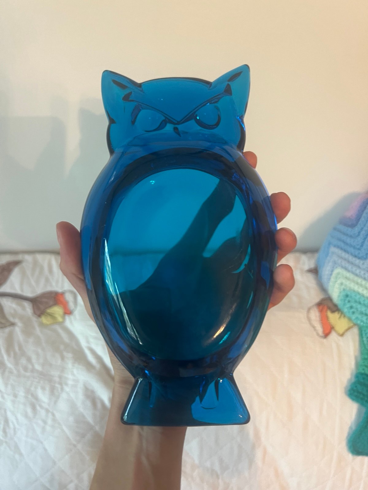 Vintage Viking Glass Owl Ashtray Blue Trinket Dish