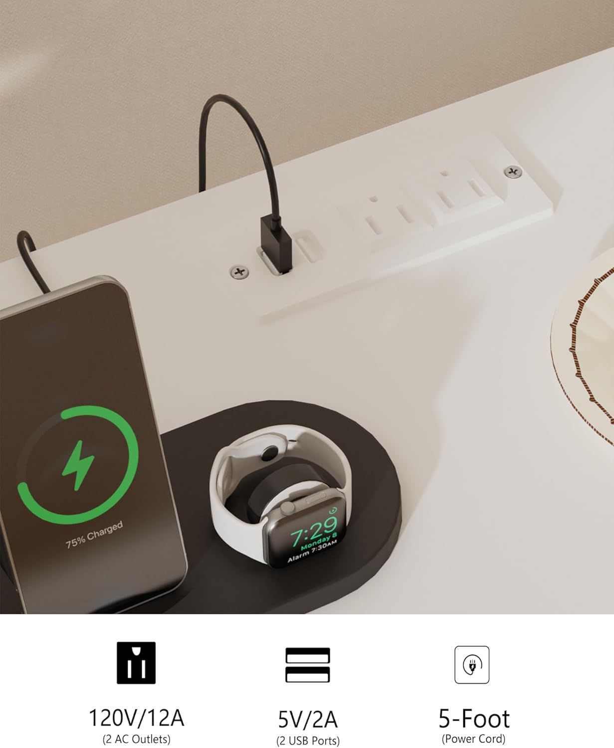 White Nightstand With Charging Station, Fluted Side Table With Drawer, Modern Bedside Table With Open Shelves For Living Room, Bedroom
