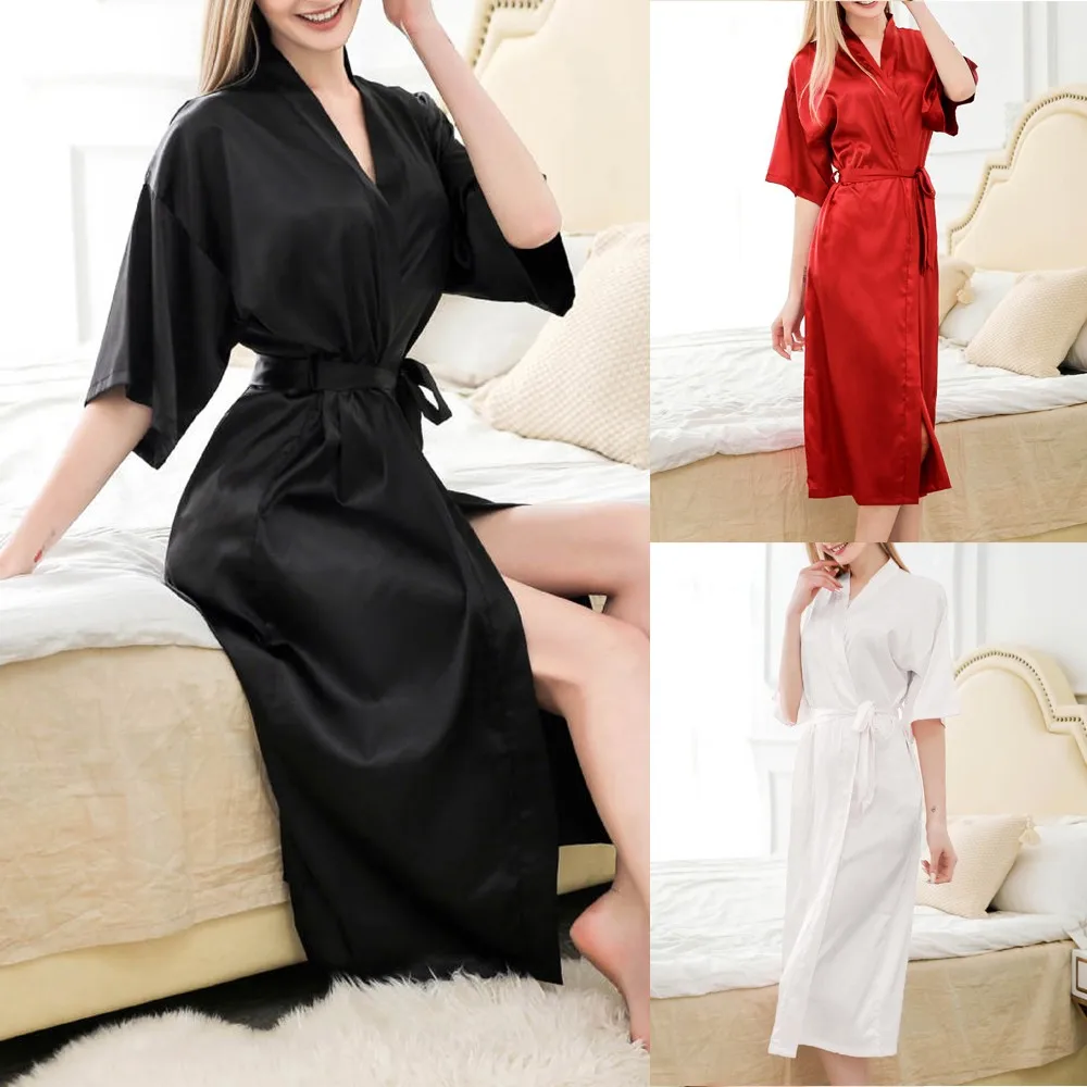 Women Night Gown Robe Satin Long Nightdress Female Wedding Dressing Gown Sleepwear Lingerie Nightdress Bath Robe Intimate