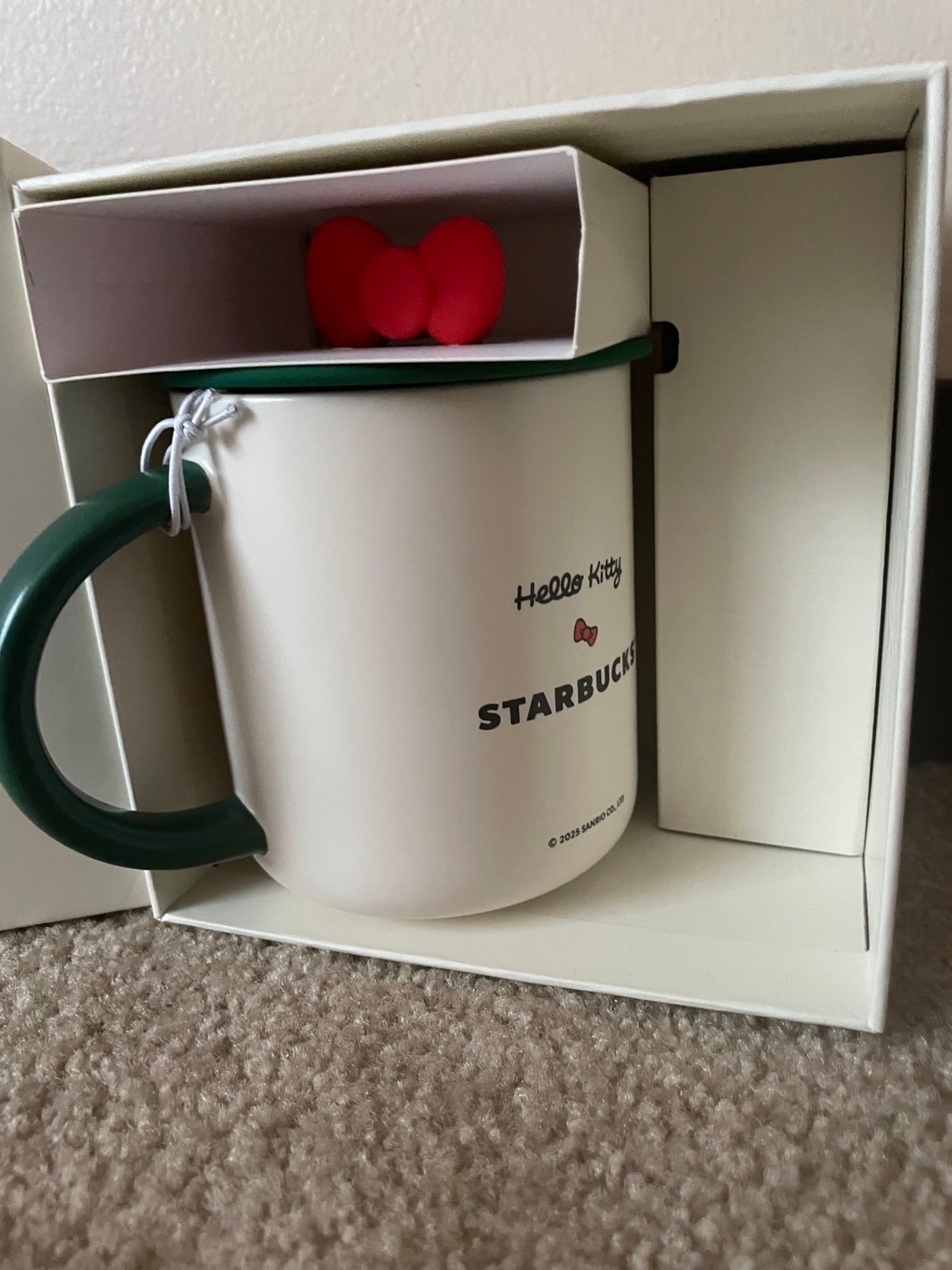 The Starbucks Hello Kitty Ceramic Mug is a delightful addition to any coffee or tea lover's collection. With a charming white color and iconic Starbucks branding, this 16 oz. mug is perfect for enjoying your favorite hot beverages in style. Made from high-quality ceramic, it is both durable and visually appealing, making it a must-have for fans of coffee, tea, and adorable designs. Perfect for both original Starbucks collectors and Hello Kitty enthusiasts, this mug is sure to bring joy to your morning routine.